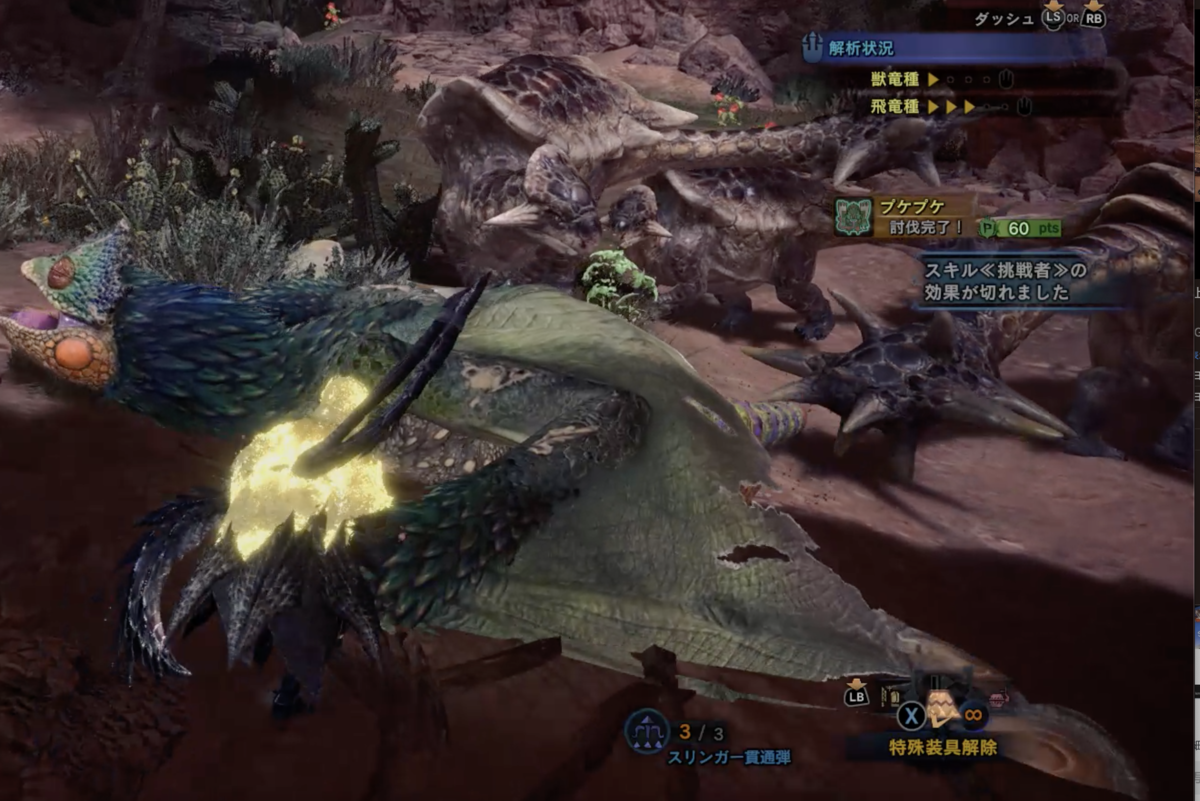 と言う事で、荒地地帯にちょうどプケプケが居たので討伐!!