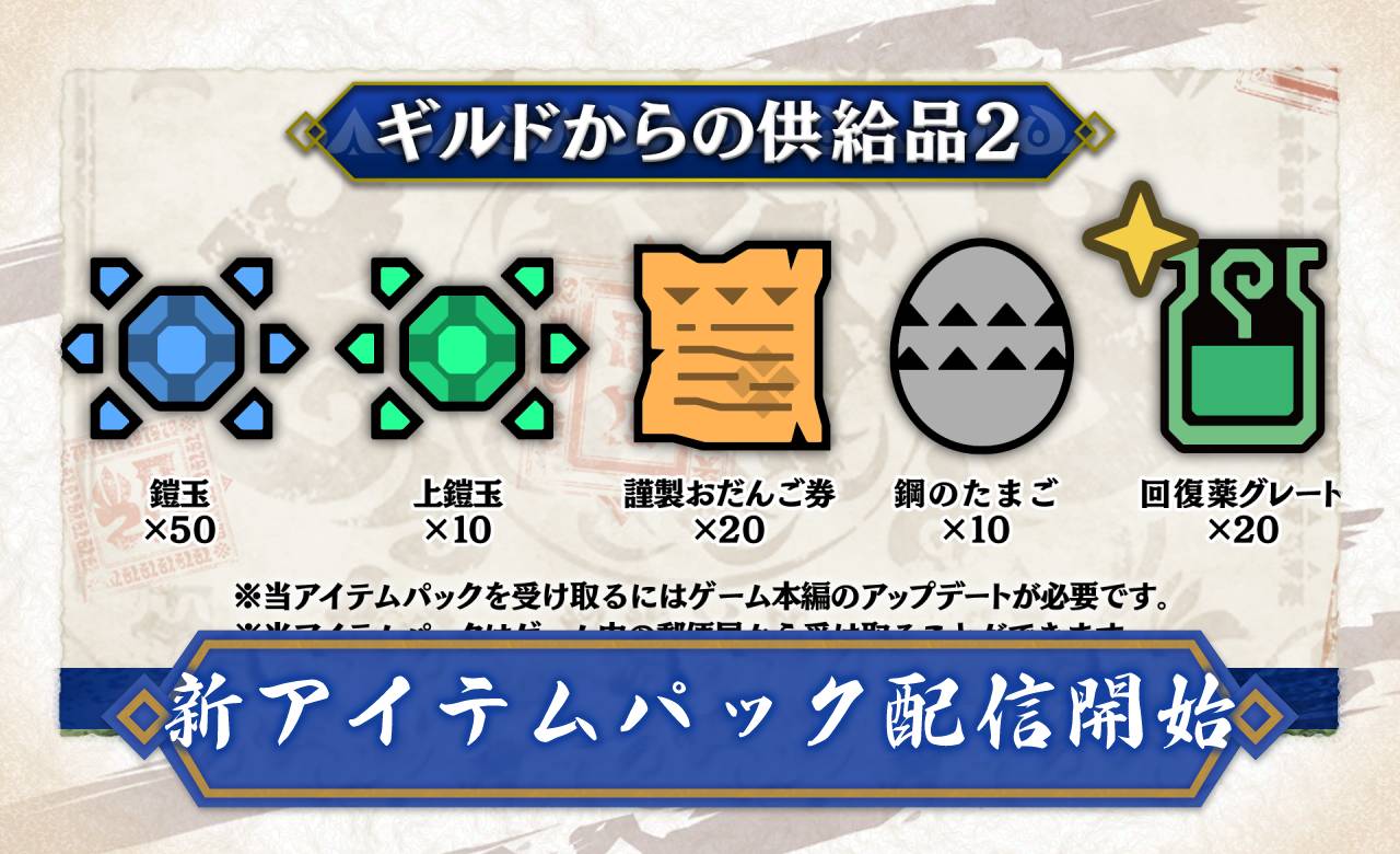 【モンハンライズ】新たなアイテムパック (ギルドからの供給品2)の配信開始【MH-RISE】