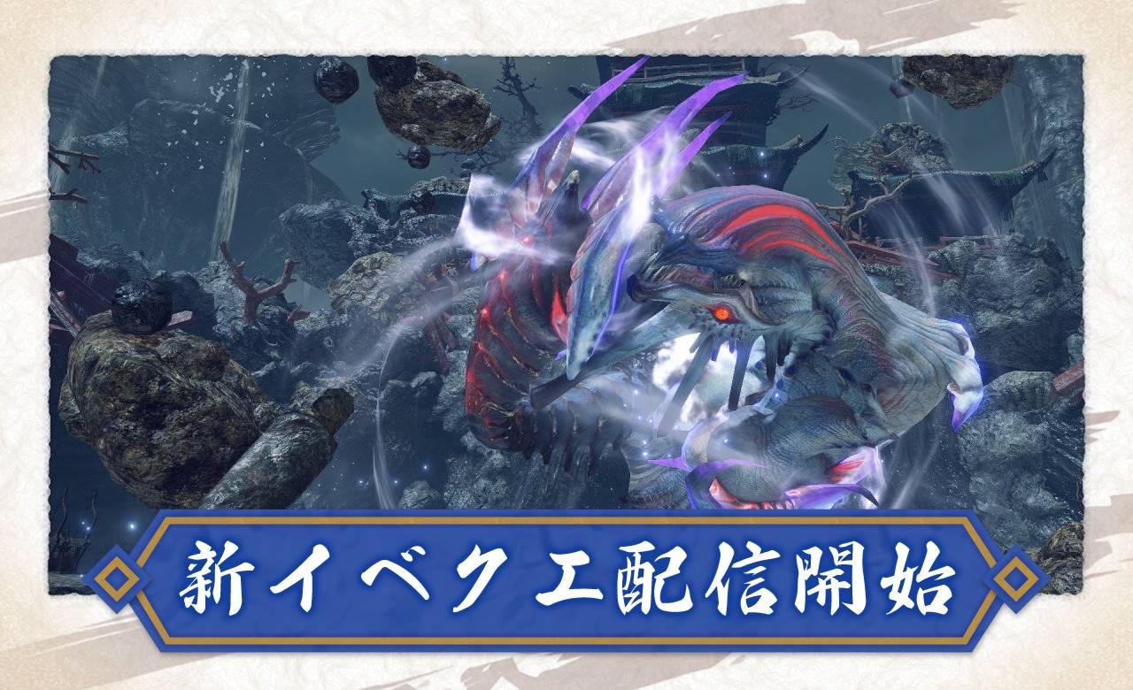 今回のイベントクエストは、イブシマキヒコ1体を竜宮砦跡で討伐するクエストです。「百竜夜行」や百竜ノ淵源ナルハタタヒメの前哨戦のみ戦えたイブシマキヒコが、初めてイブシマキヒコとだけ戦えるクエストとなっています。そして、通常のクエストに登場するイブシマキヒコより強力な個体となっており、難易度が高めとなっているクエストです。