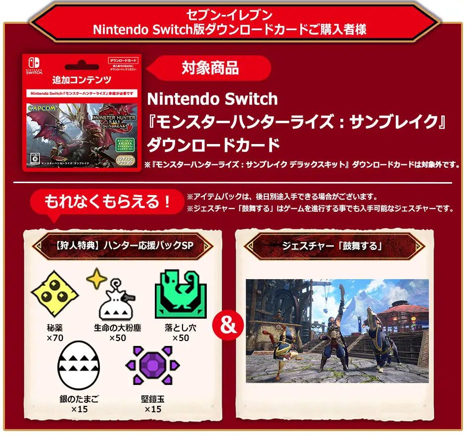 ※セブンネットショッピングでNintendo Switch『モンスターハンターライズ + サンブレイク セット』パッケージ版をご購入いただいた方も対象です。