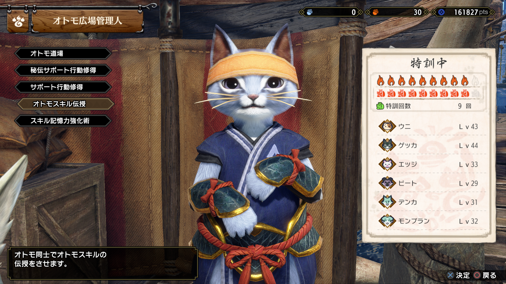 - スキルを覚えさせたいオトモを選択