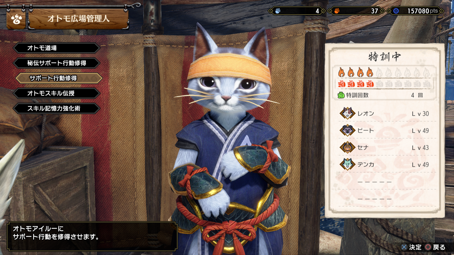 - サポート行動を変更したいオトモを選択