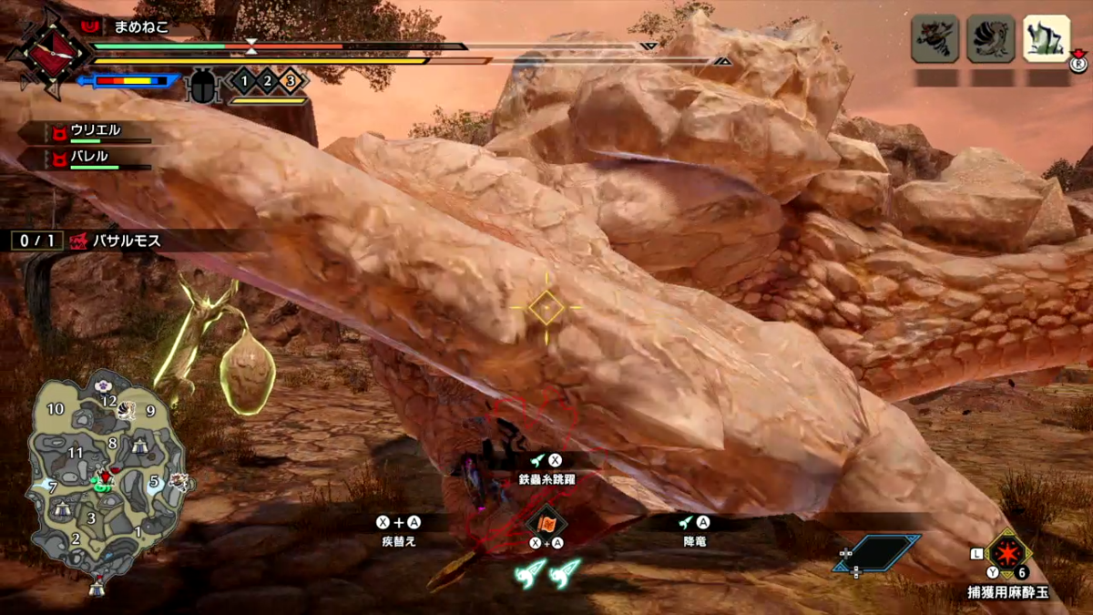屋根の上から跳んでリオレイアに上から攻撃しようとしたら、リオレイアが絶妙な距離に移動して行ってしまい、翔蟲使いどきがなくて、届かなくて普通に着地したりとなかなか楽しんでおります。