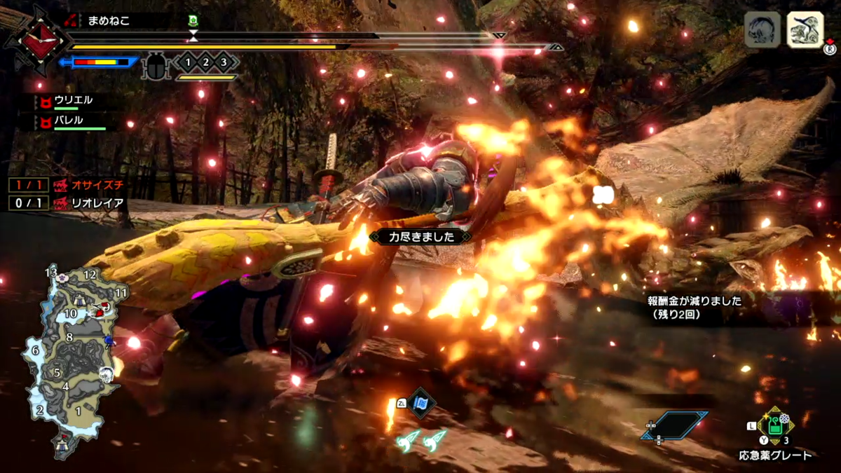 モンハンの主人公のリオレイア女王様に逆らった罰を受けてしまいました(笑)