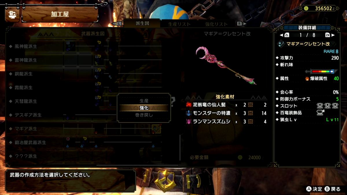 ランマンスズムシが必要数手に入ったので、マギア=クレセント改に強化できました。
