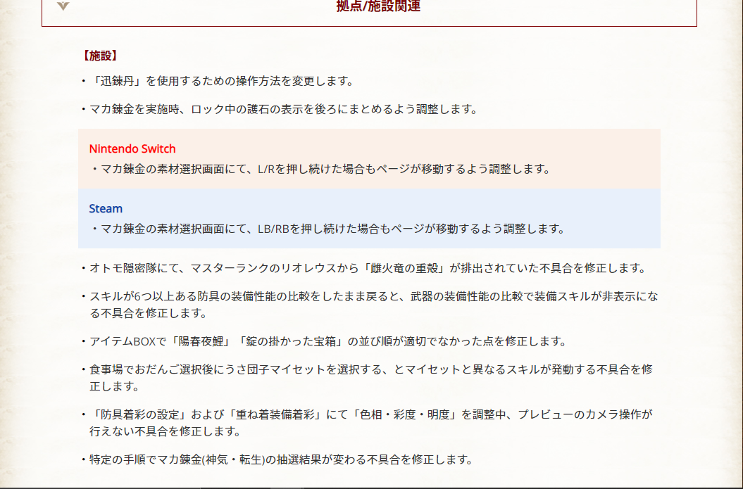 公式ページの更新データVer.11の拠点/施設関連の項目で、「特定の手段でマカ錬金(神気・転生)の抽選結果が変わる不具合を修正します。」と書かれています。