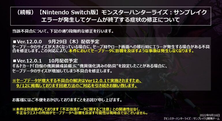 The post 【話題】エラーが発生してゲームが終了する症状の修正についてお知らせキタ━━━(゚∀゚)━━━!! first appeared on モンハンサンブレイク攻略まとめ隊.