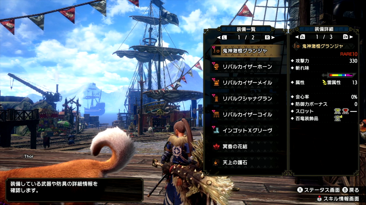 ナルガクルガが傀異討究だったので、雷属性の片手剣を用意してみました。