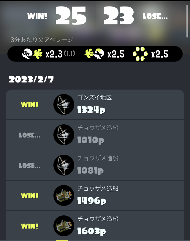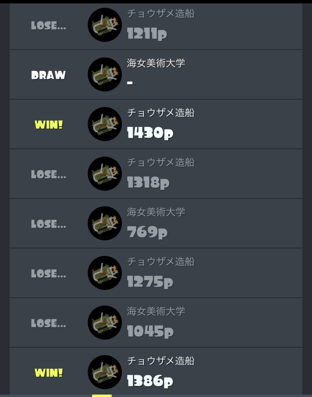 フェスに向けてのナワバリバトルは10勝9敗でした。