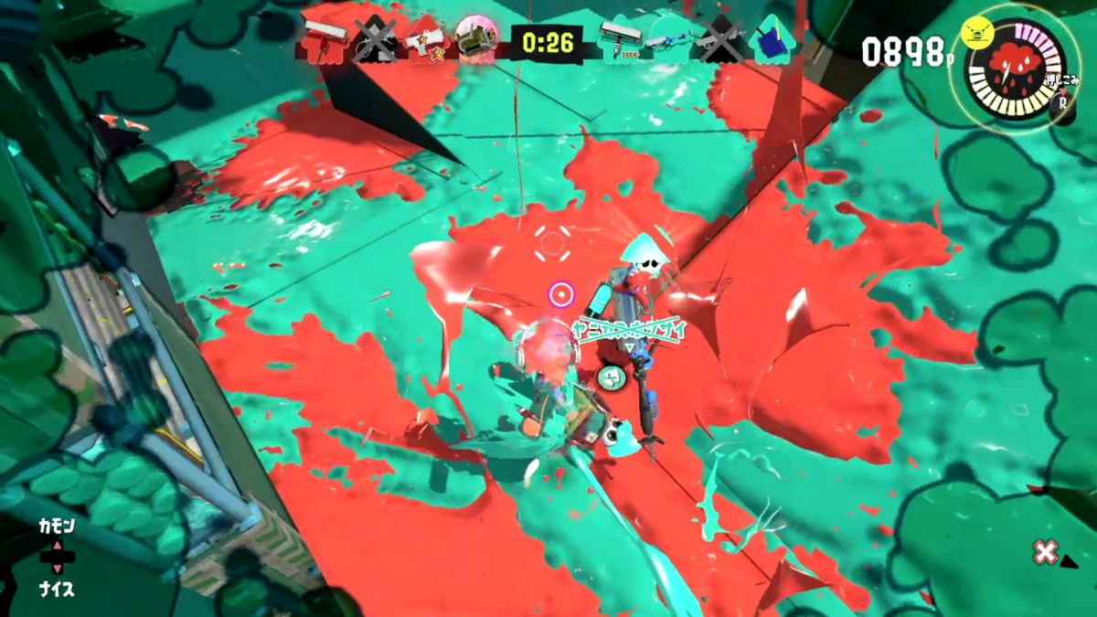 ナワバリバトルって、逆転の見込みがないなぁって途中でわかってしまうので、乗り気ではなかったのですが、フェスに向けてエクスプロッシャーをもっとうまくなっておきたいので遊んできました。