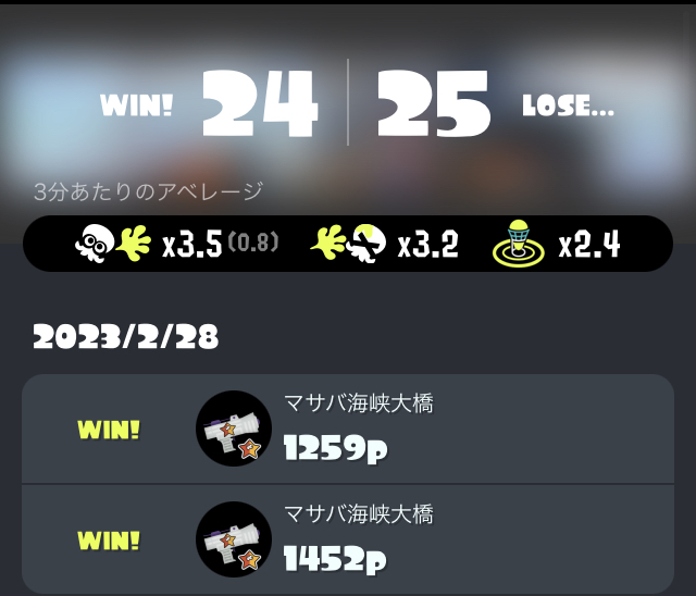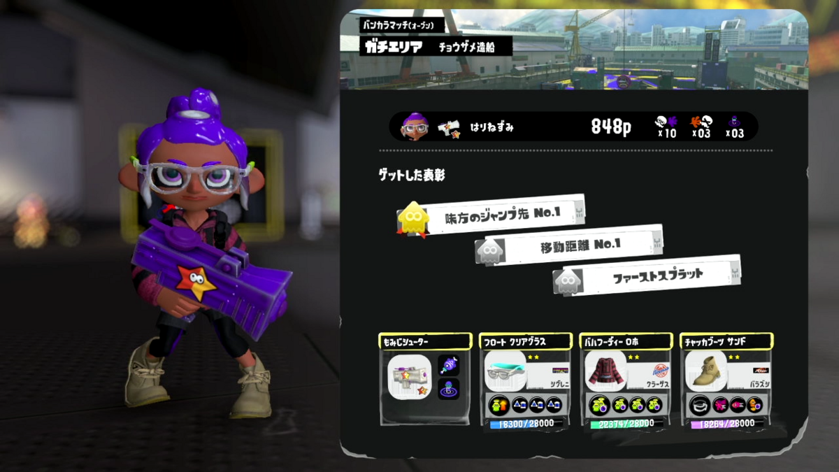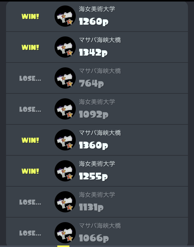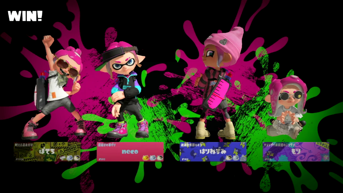 ナワバリバトルですが6勝4敗とまずまずの成績です。