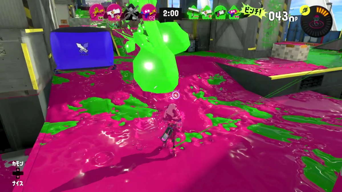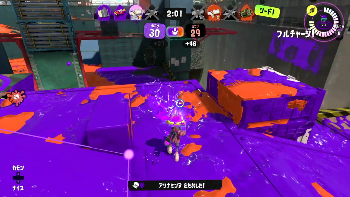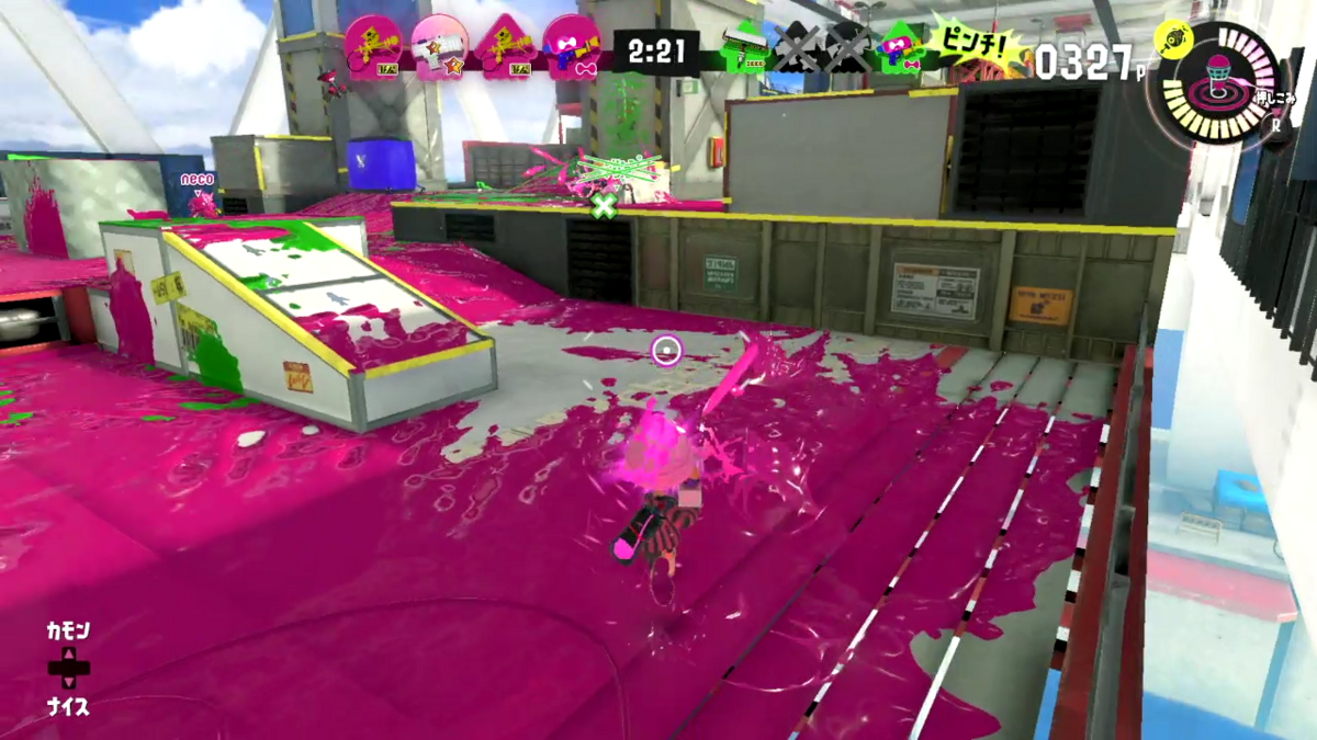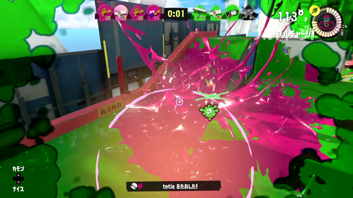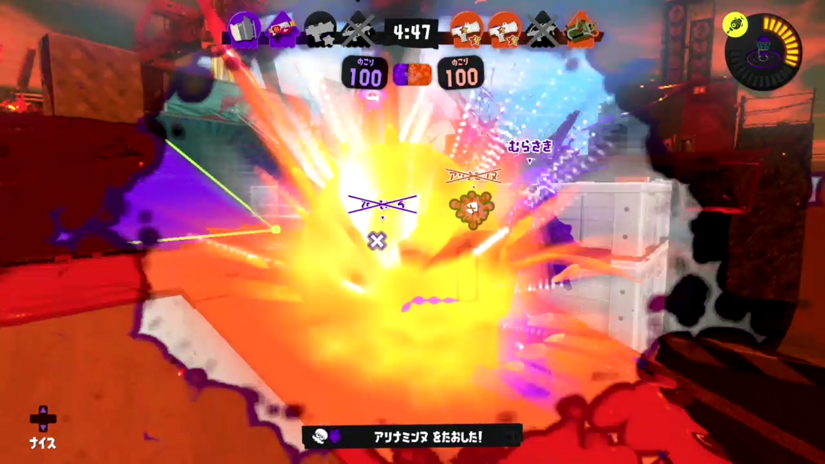誰か相手がこっちに向かってきてるのがわかっていたので、ひとまずはポップソナーを出し盾にして撃破。