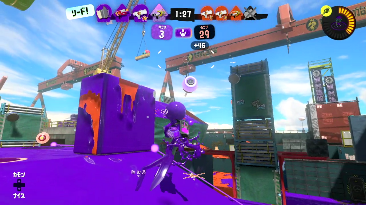 明らかに怪しげなインク残を見かけたので潜伏の可能性が有るので、射程の一番先を充てる様にして、クリアリングしたら中から耐えられなくなったシャーカーが出てきたので撃破!!
