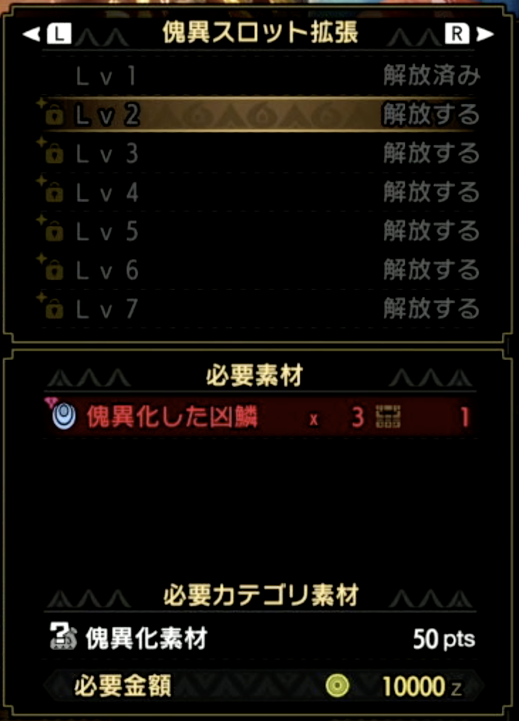 逆に傀異研究レベル上げでたくさん行ったモンスターの素材は余ってます。