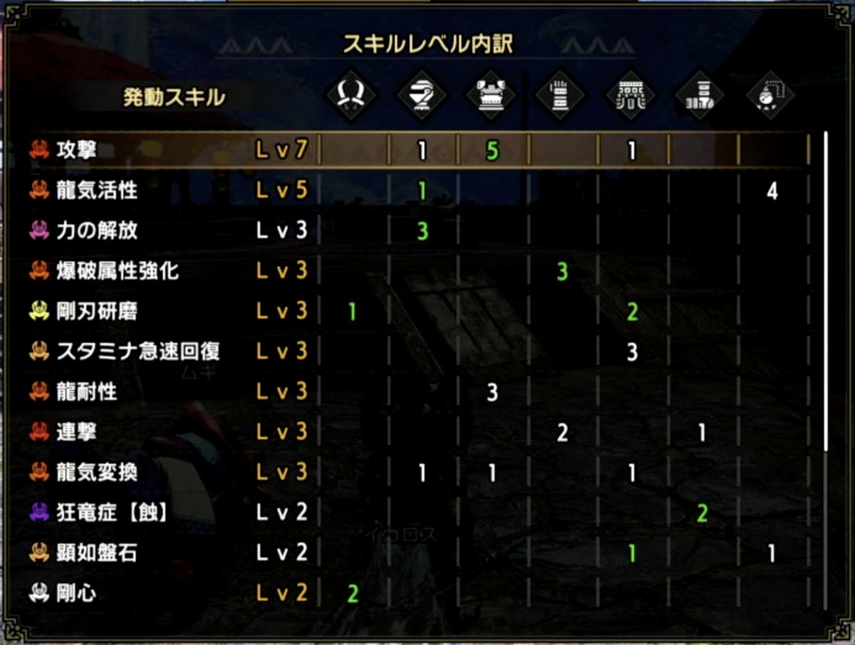 昨日の装備で闇討ちを外して代わりに狂竜症【蝕】をLV2にしてみました。
