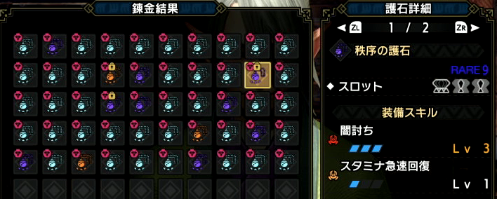 護石ガチャをある程度やって良いのが出たら、防具の傀異錬成ガチャをしようと思います。