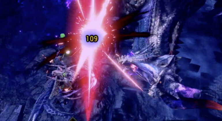 エフェクトが多いのと、操虫棍で真上にいるのでシャガルマガラの頭が逆さま担ってたりとよくわからないスクショになっております(笑)