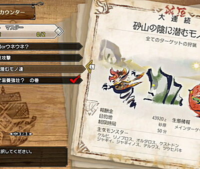 ・ストーリー進行セレクトクエスト・緊急クエスト連打