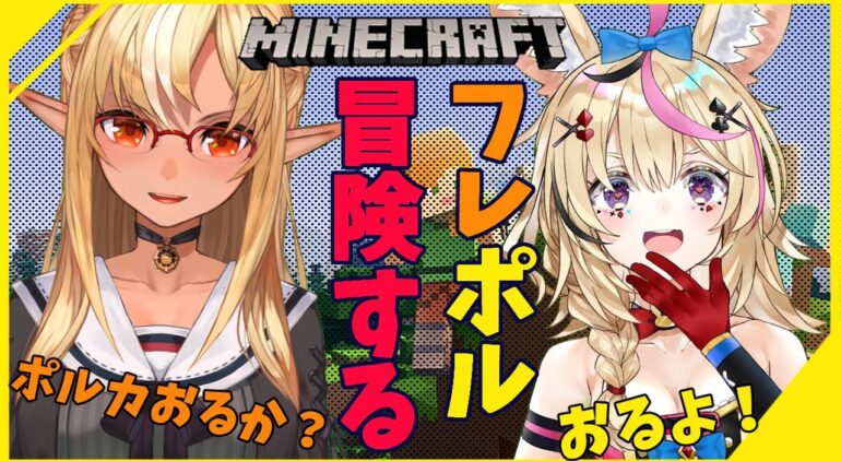 【マインクラフト/Minecraft】ポルカどいて!そいつ*せない!🎪🔥First adventure【不知火フレア/尾丸ポルカ/ホロライブ】