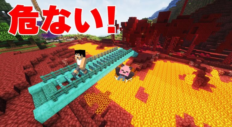 渡るな危険❗❗ネザー湖のヤバすぎる橋 PART241【マイクラ.アツクラ】
