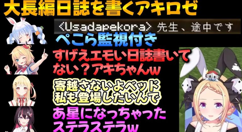 ぺこら編集長や仲間に監視されながら超大作の日誌を執筆するアキロゼ【アキ・ローゼンタール/ホロライブ切り抜き】