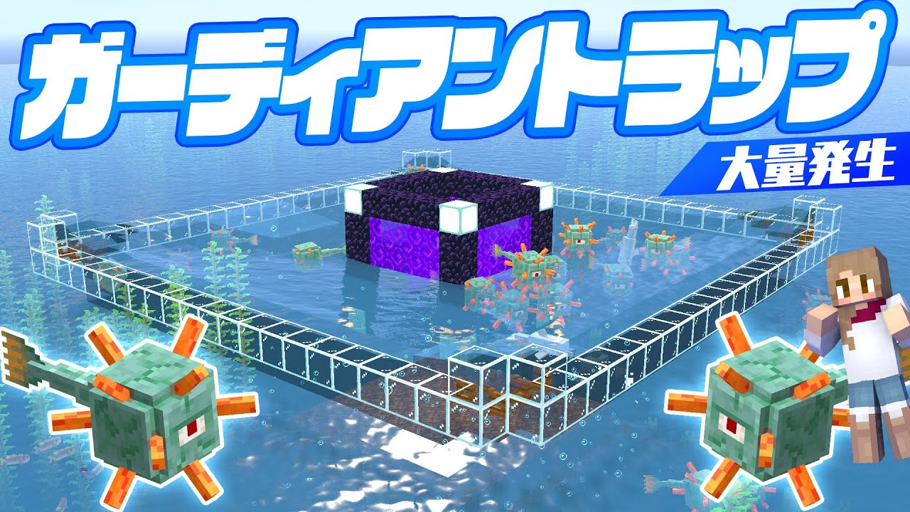 海底神殿に初めてネザーゲートを使うガーディアントラップをつくったら期待以上の効…