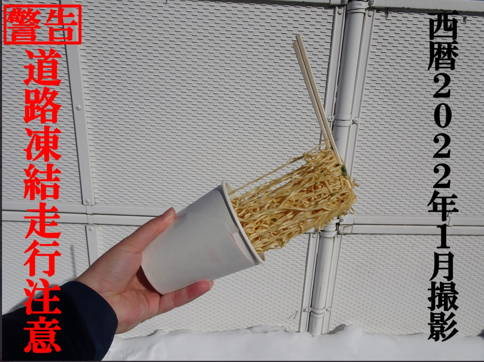 もっと読む>>まるで食品サンプル。凍ったカップラーメンで事故啓発。裏側にあった夜通しの努力(画像)