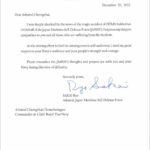 Please remember the JMSDF’s thoughts and prayers are with you and your Navy during this time of difficulty.