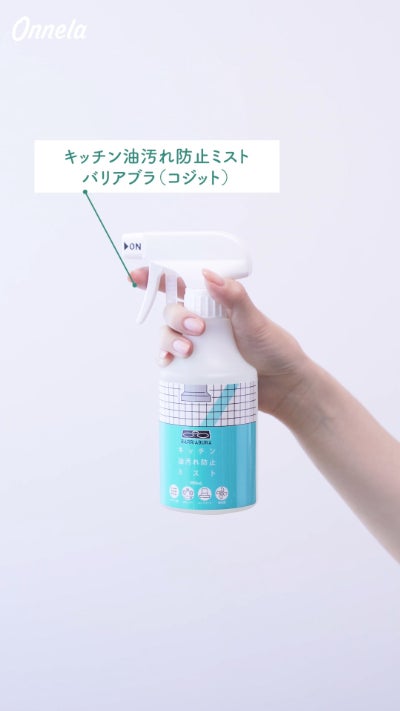 コンロ周りには、油汚れを防止してくれるグッズを活用しましょう。今回は、コジットの「キッチン油汚れ防止ミスト バリアブラ」を使用しました。