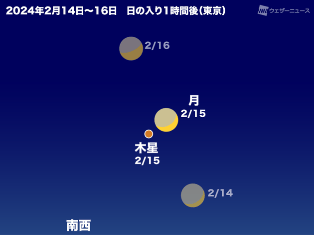 今日2月15日(木)の夜空では、お月様と木星が非常に近い位置で輝きます。