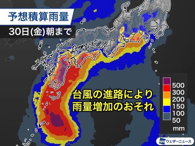 総雨量は500mm以上 台風の動き次第でさらに増えるおそれ