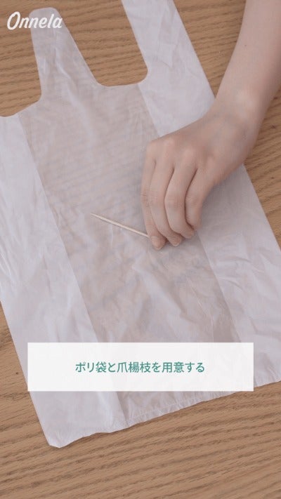 まず、ポリ袋と爪楊枝を用意します。