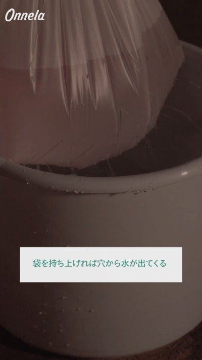 ポリ袋の下の方に、爪楊枝で穴をあけていきましょう。