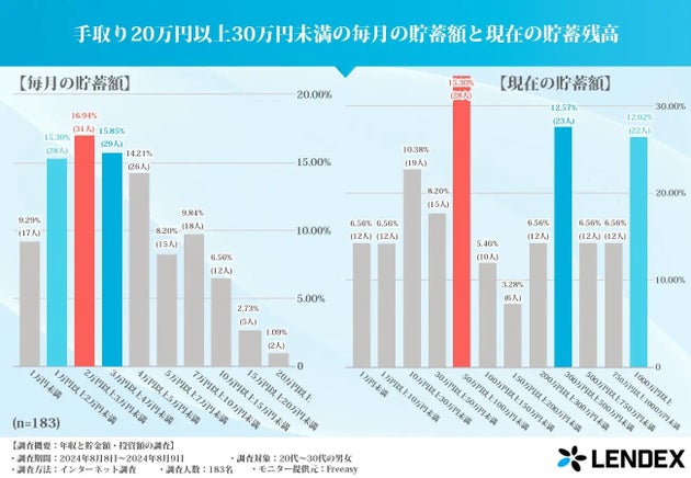 融資型クラウドファンディングサービスを展開するLENDEXが8月、20〜30代の500人を対象に「毎月の貯金額と現在の貯蓄額」に関する調査を実施し、結果を発表しました。