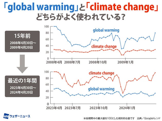「グーグルの検索数では、以前は『global warming』が多かったのですが、近年は逆転して『climate change』が多くなっています。