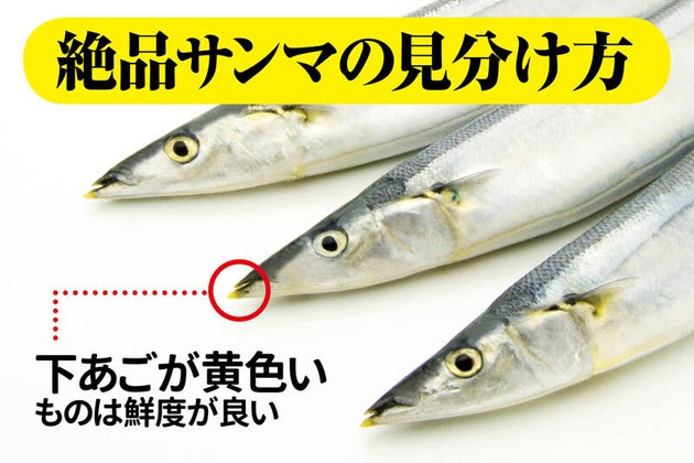 あとはよく言われますが、サンマの下あごは鮮度が良くて脂がのっていると黄色いですが、鮮度が落ちてくると茶色っぽくなります。これもわかりやすい目安ですね。