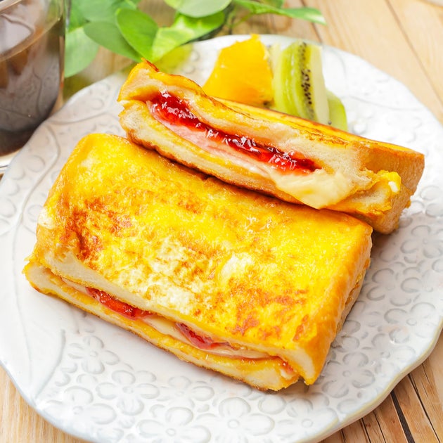 「食パン」は全部コレにして!って思っちゃう!いちごジャム、チーズ、ハムを、塩味の卵液を浸した食パンで挟んで焼いた、甘くてしょっぱいフレンチトーストレシピをご紹介します。いちごジャムの甘さとチーズのコクのバランスが最高ですよ。朝ごはんやおやつの新定番になるかも!?一度食べたらクセになる「いちごジャムとハムチーズのフレンチトースト」レシピです。