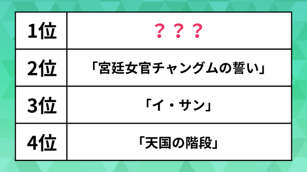 3位は2007年に製作された「イ・サン」。数多くの名時代劇を生み出したイ・ビョンフン監督が手がける作品で、朝鮮王朝時代の第22代王・正祖(チョンジョ)の波瀾万丈な人生を描いています。