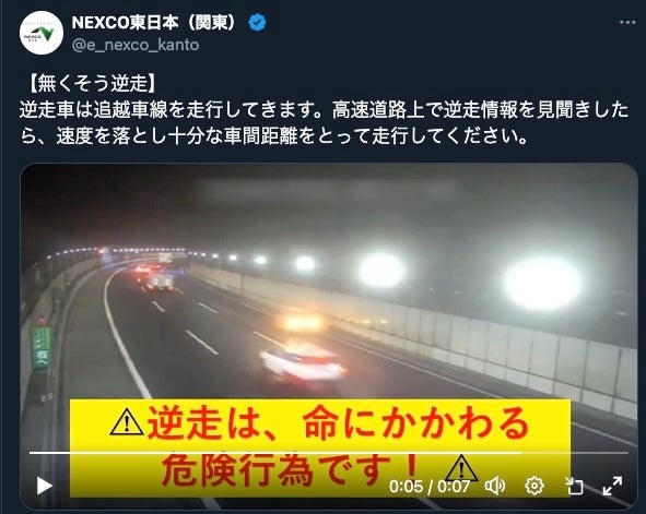 NEXCOは投稿で、「高速道路上で動物の徘徊を見かけた際はハザードランプを点灯させ、後続車両に注意喚起をするとともに接触に注意して走行してください」と発信。