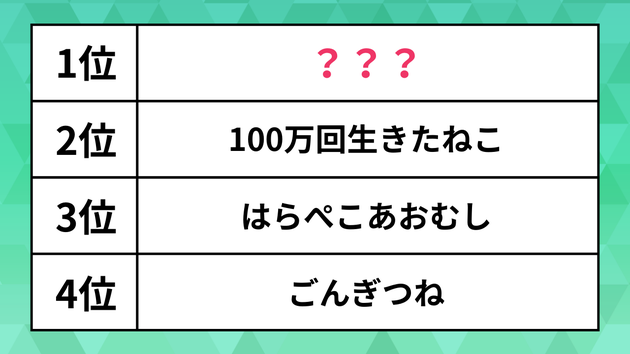 2位は佐野洋子さんによる『100万回生きたねこ』。転生を繰り返す猫が徐々に本当の愛を見つけるという物語で、絵本ながらも深い哲学的なテーマが描かれた名作です。