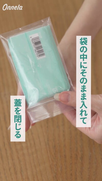 ポケットティッシュを袋に入れ、蓋をしっかり閉じましょう。