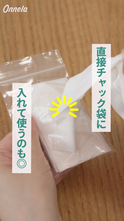 パッケージが破れて使えなくなった場合は、チャック付き袋にティッシュだけ移し替えて使うのも良い方法ですよ♪