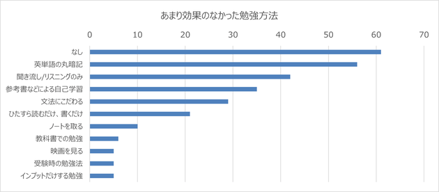 「あまり効果のなかった勉強方法」を尋ねたところ、以下の結果になった。