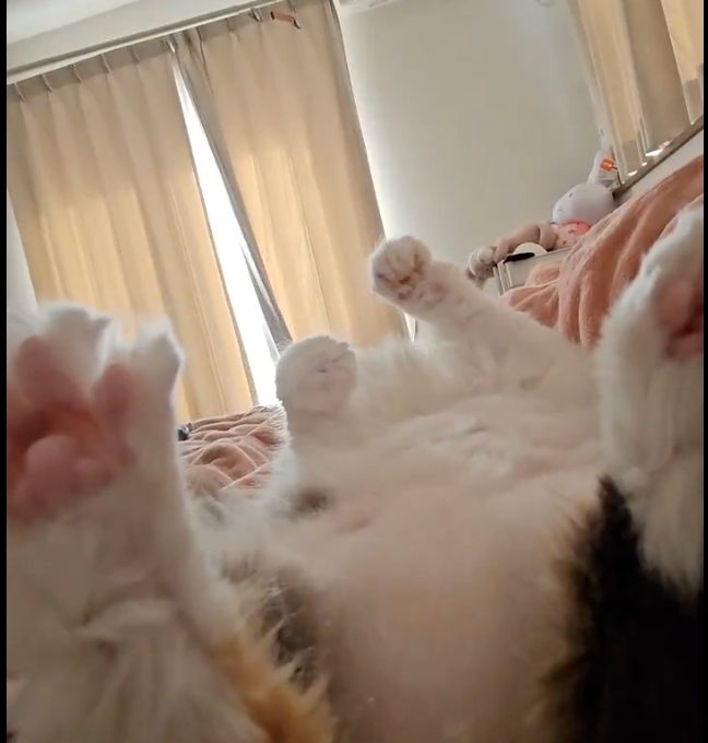 【あわせて読みたい】空中で「エアふみふみ」する可愛い猫に「いいアングル」「ピンクの肉球が堪能できる」と7.1万「いいね」