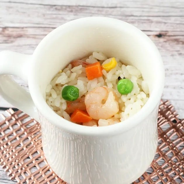 【レンジでパパッと完成!】マグカップで「エビピラフ」が絶品に仕上がる超簡単レシピ