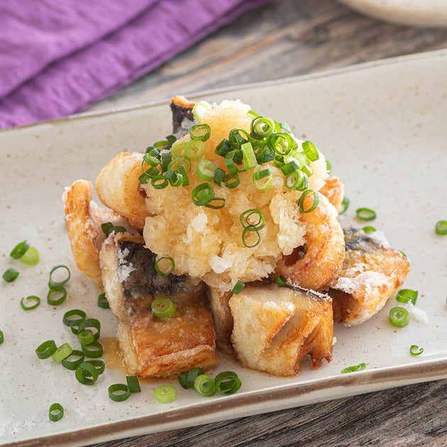 塩さばは焼くより揚げた方がウマい!今回はこんがりと揚げた塩さばに、大根おろしとポン酢しょうゆを添えた「塩さばの竜田揚げおろしポン酢」のレシピを紹介します♪塩さばは片栗粉をまぶして揚げるだけなので作るのもラク。シンプルなんだけど、さっぱりで旨みたっぷりの一皿に仕上がっています♪