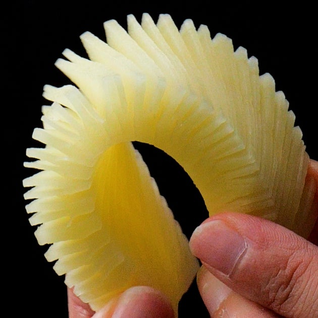 大人気の蛇腹シリーズ!じゃがいもで作る立体的な「ジャバラポテト」のレシピをご紹介します!蛇腹に切っているから変幻自在♪くるっと留めたら見た目もオシャレで、パーティーフードにぴったりですよ♪