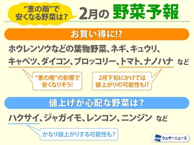 2月後半から値上がりしそうな野菜もあります。