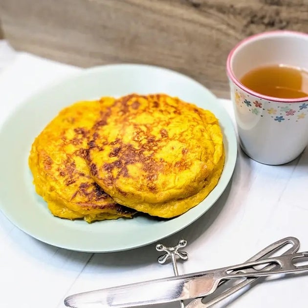 ほくほくかぼちゃと濃厚チーズの夢コラボ!かぼちゃの甘み×チーズのコクが織りなす絶品ハーモニー!一口で広がる幸せ、もちもち食感がクセになる至福のパンケーキ♪