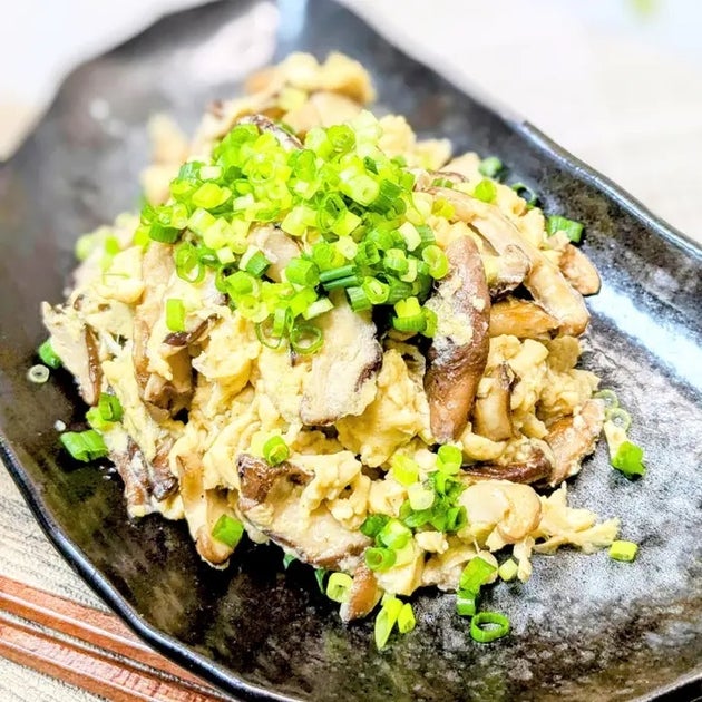 【シイタケと卵の炒め物】シイタケのうまみと卵のふんわり食感が絶妙にマッチ!シンプルな材料とオリーブオイルで仕上げる、手軽でおいしい炒め物です。忙しい日の一品にもぴったり♪毎日食べたくなる洋風アレンジで、食卓を彩る一品です!
